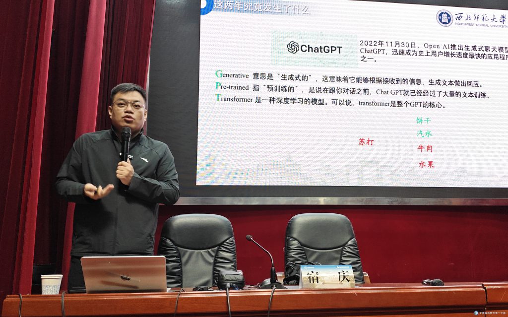 25日上午,西北師范大學(xué)教育技術(shù)學(xué)院副院長宿慶以《理性認識,合理利用——Deepsesk(深度探索)人工智能教育應(yīng)用》為題,深度講解Deepsesk這一技術(shù)載體與教育發(fā)展的相互作用和有益借鑒,內(nèi)容新穎、實用性強。